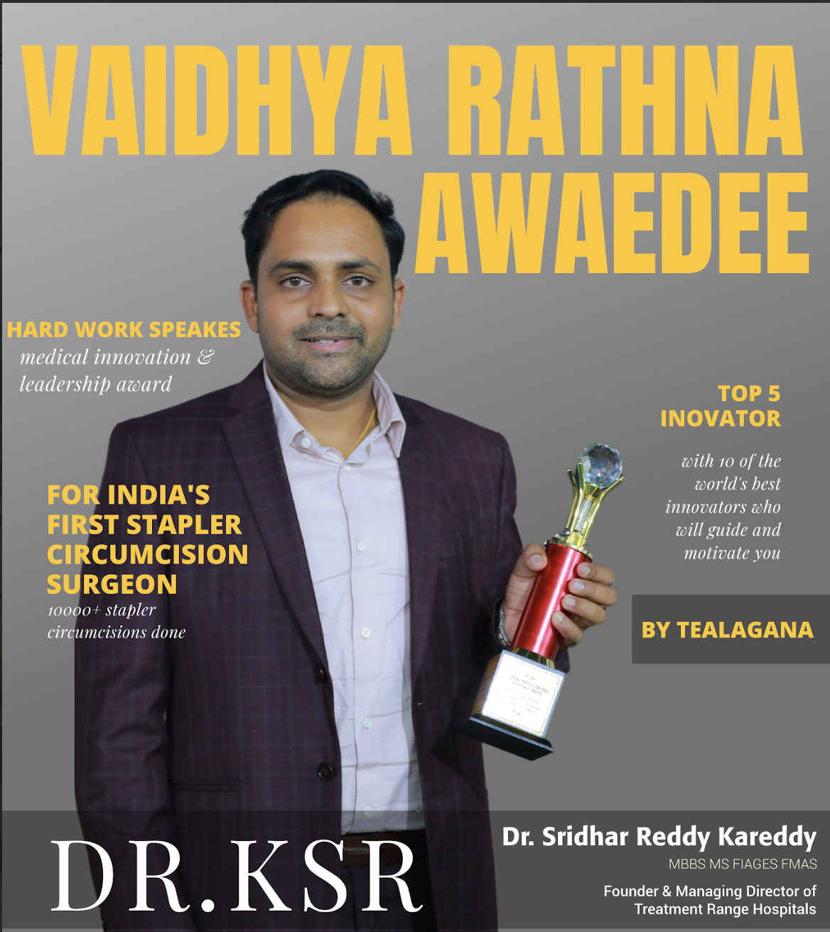 Dr. Sridhar Reddy Kareddy is a well-known surgeon in India with over 20 years of experience. He is an expert in general, laser, and keyhole surgeries and is famous for being the first doctor in India to master the KSR Stapler Circumcision technique.