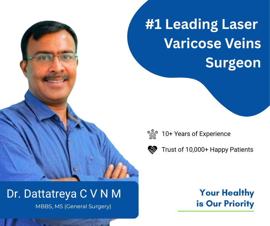 Dr. Dattatreya C V N M, an experienced surgeon for Varicose Vein Laser Surgery, is an expert in Endovenous Laser Treatment (EVLT), offering advanced, minimally invasive procedures.